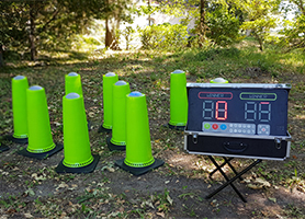 Le jeu est une valise composée d’un tableau de bord électronique et de 10 cibles tactiles Une fois les cibles installées vous pouvez lancer l’un des 3 jeux interactifs, dont la durée de chaque est de 45 secondes:Vous pouvez aussi choisir un des 10 thèmes de sons interactifs. Les thèmes possèdent une dimension interactive sans l’élément de compétition. Un thème est une combinaison de lumières, musiques et sons. Lorsqu’un joueur frappe une cible, celle-ci émet un son associé au thème.